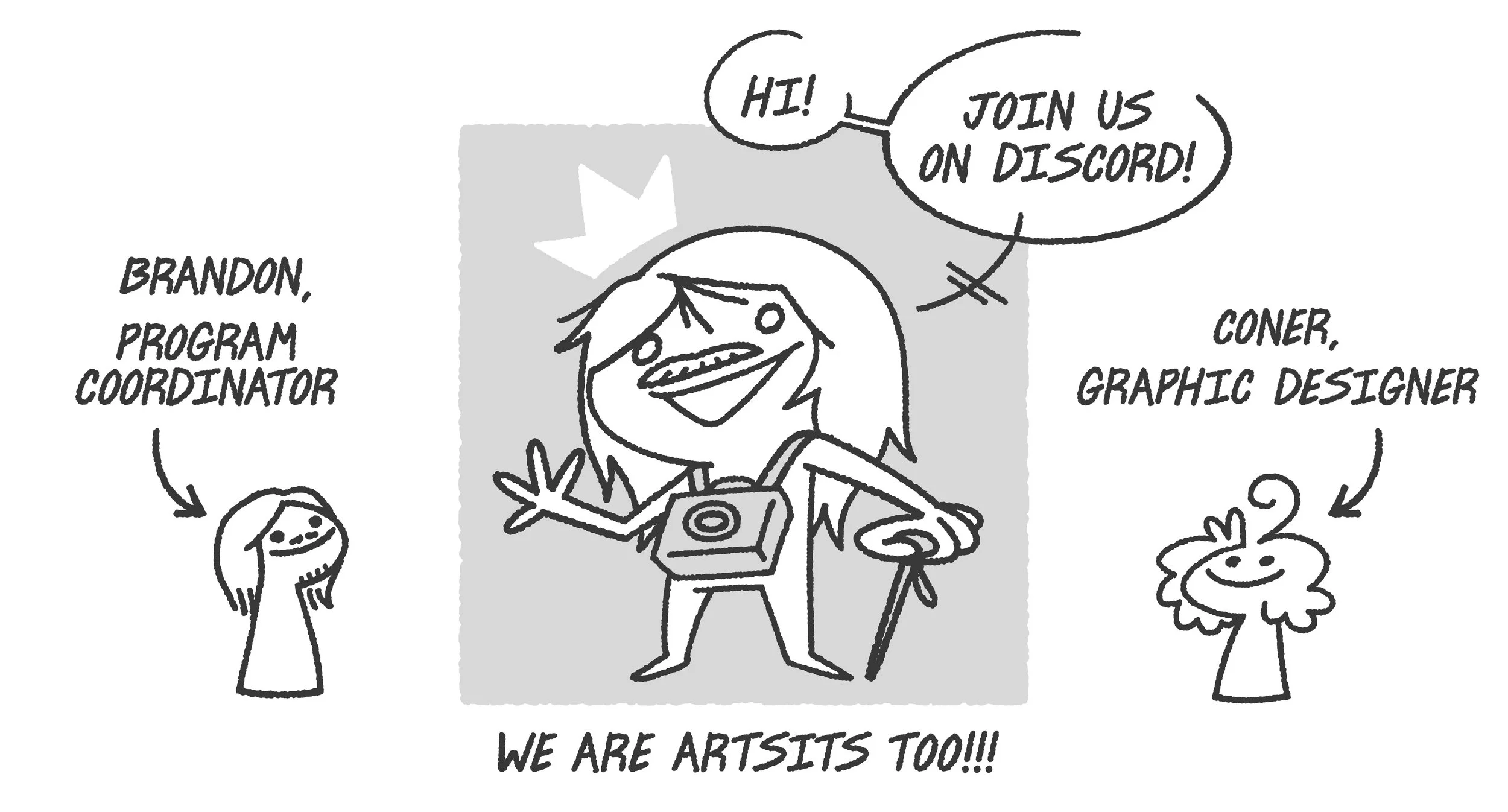 Membership has many perks and benefits beyond helping you save on the services the studio provides. You’ll get exclusive access to our member’s only Discord server where we share opportunities and do all our planning. You’ll also get exclusive discounts on printing, invitations to regular member’s only workshops, have the opportunity to submit to and help plan shows in the space, and more!
